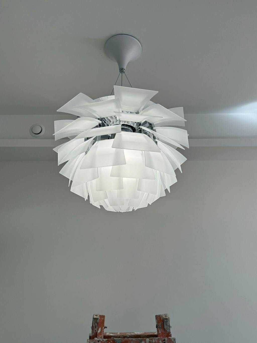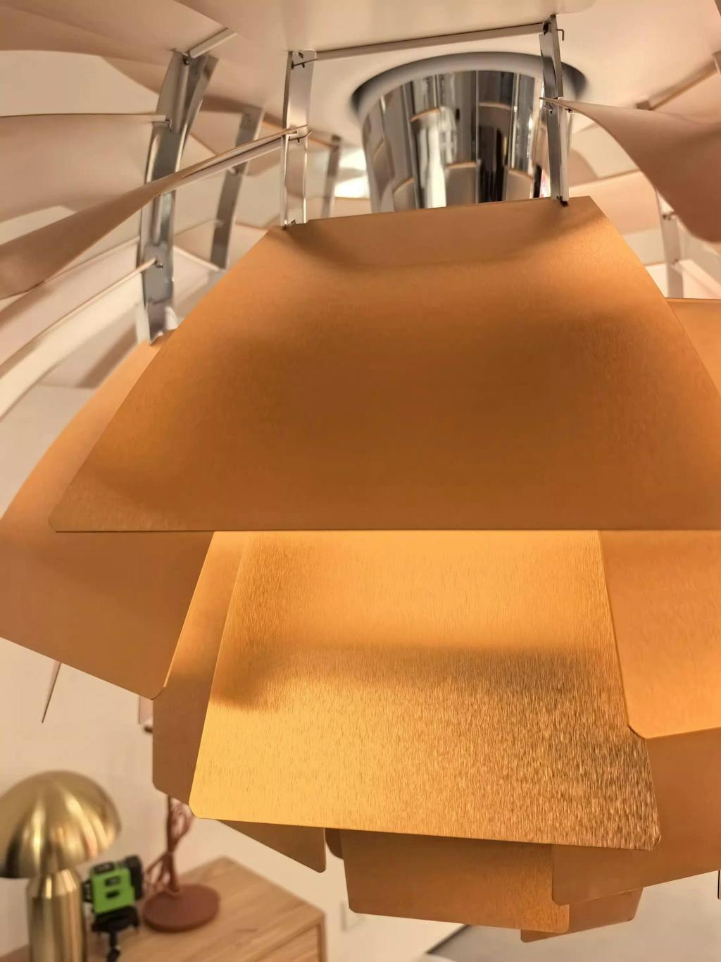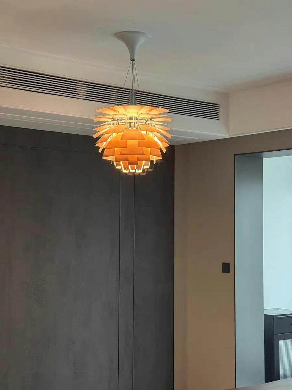 The PH Pinecone Pendant Light brings Nordic elegance to any room. Its iconic pinecone silhouette, crafted from 72 aluminum leaves in 12 layers, creates striking visual texture. Available in multiple sizes and finishes, this timeless fixture emits warm 3000K light ideal for living spaces, dining areas, and bedrooms. A sophisticated choice for modern interiors seeking both style and substance.