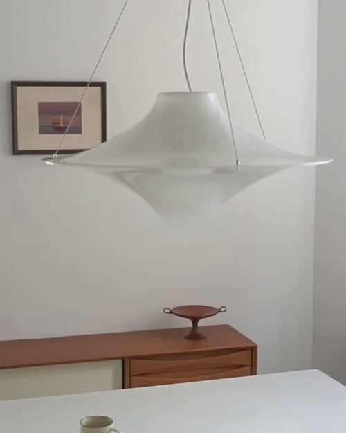 The Lokki seagull pendant light brings mid-century modern style to any room. Its distinctive seagull silhouette, crafted from ivory white acrylic with a metal frame, delivers warm LED illumination ideal for living spaces, dining areas, or studies. Available in two sizes and simple to install, this fixture combines vintage aesthetics with contemporary functionality.