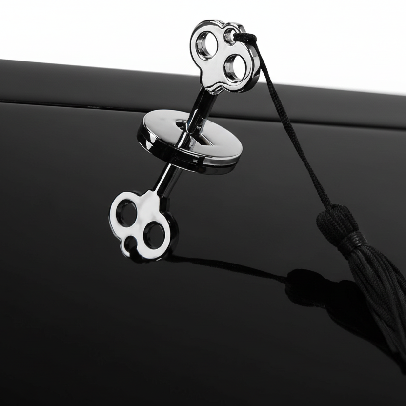The Dune Two‑Position Watch Winder Box with two 5.3" turntables accommodating timepieces up to 2.3". Features piano-gloss lacquer finish mode powered by a quiet motor. Operates via battery or AC adapter. Soft sponge cushions protect watch cases and straps. Compact 7" × 7" × 7.5" design with chrome accents.