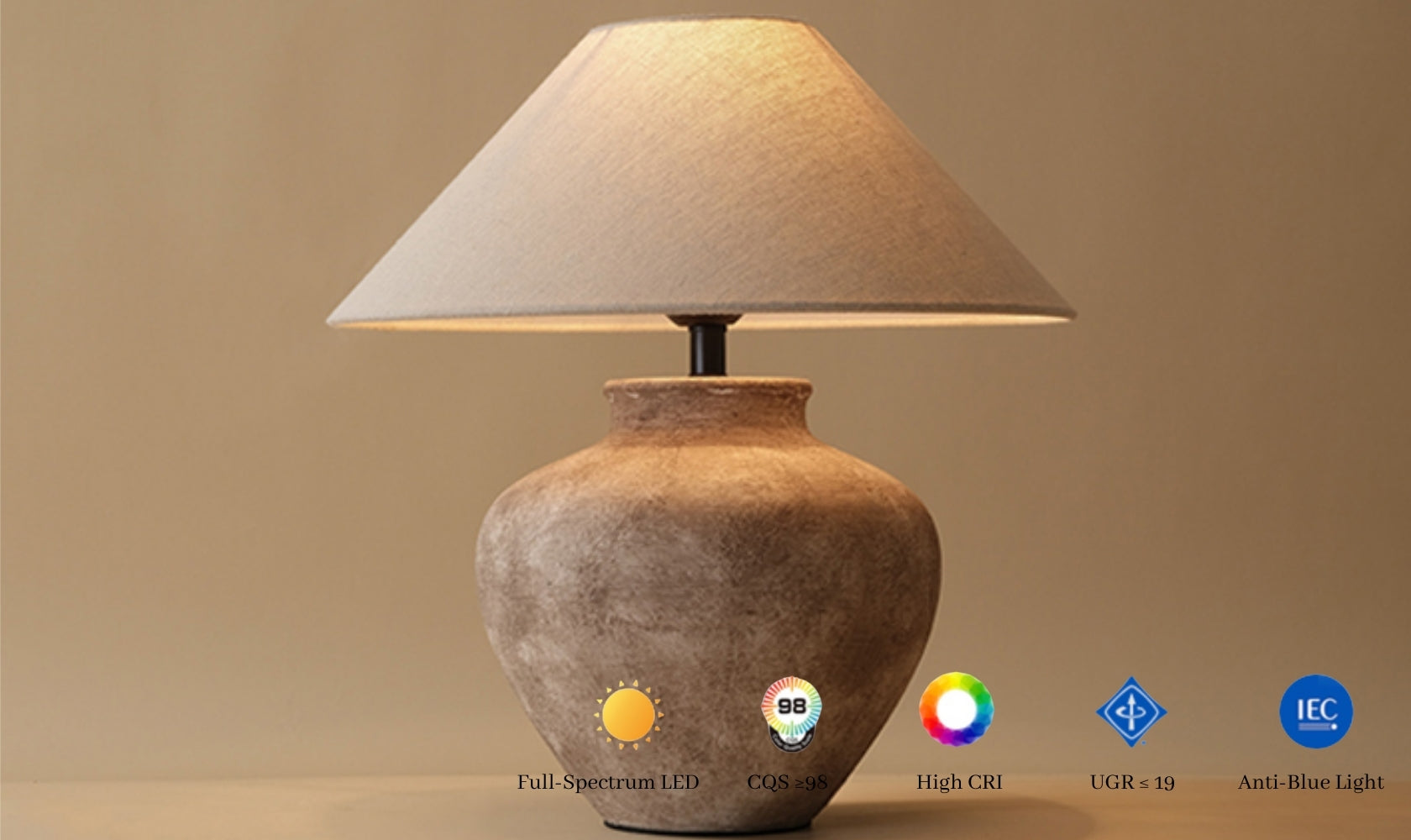 Ethan Ceramic Table Lamp brings understated elegance to any room. This hand-thrown ceramic base features authentic aged texturing that adds character and warmth. The cotton-linen shade delivers soft, diffused light perfect for reading or ambient settings. Durable PVC-reinforced construction ensures lasting shape and performance. Compatible with standard E27 bulbs (110V–240V) and controlled via simple push-button switch. Each piece is individually crafted, making it a distinctive addition to living spaces, bedrooms, or studies.