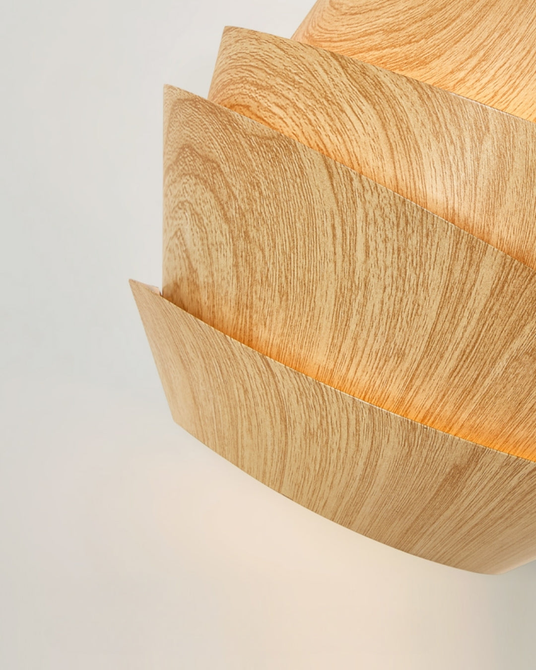 Pinecone-shaped wall light combining iron construction with natural wood accents for Nordic-inspired décor. LED source delivers adjustable warm and tri-color lighting modes via manual control. At 25cm x 20cm, it provides balanced illumination for intimate spaces like bedrooms and hallways without excessive brightness.